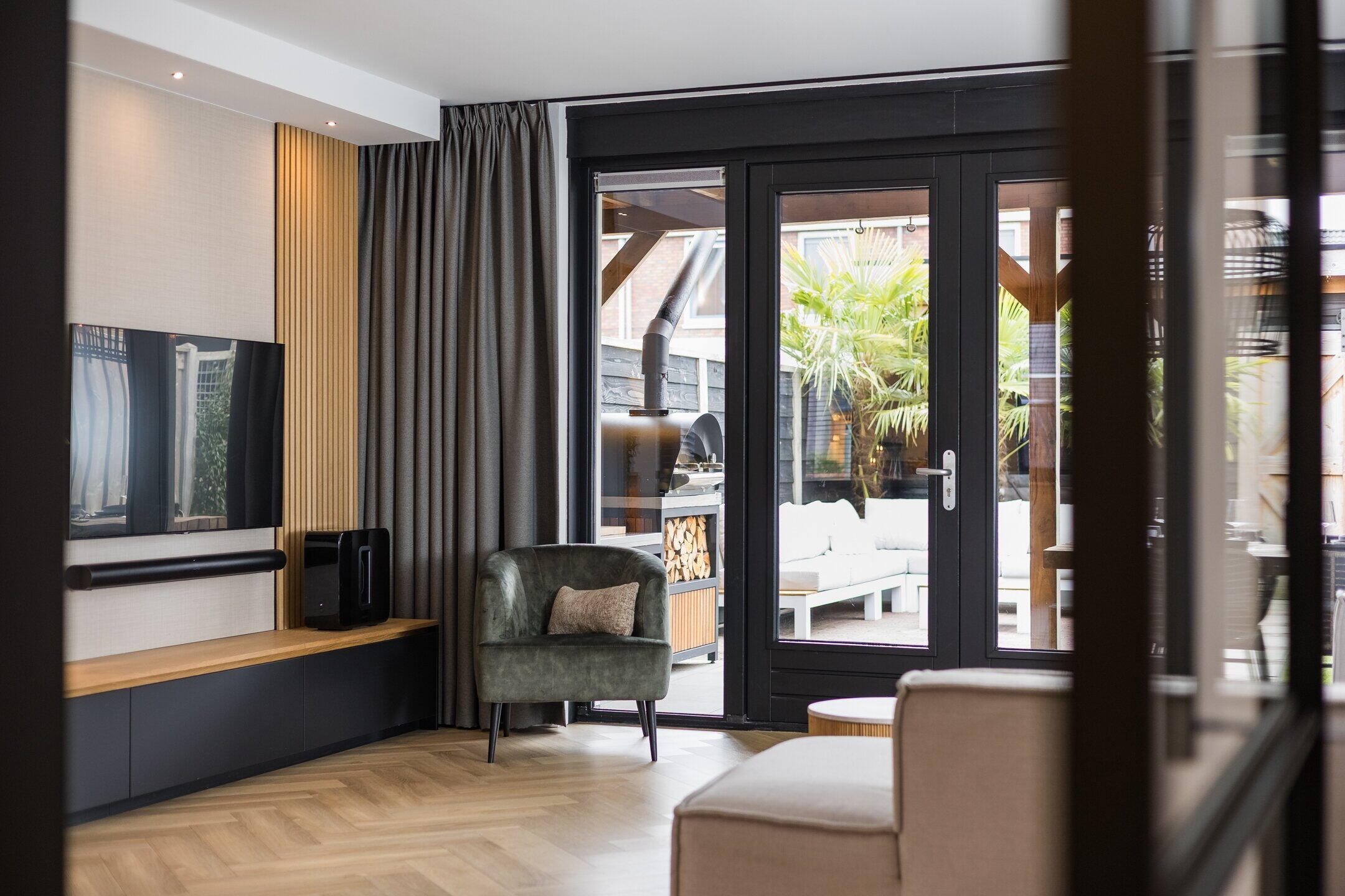 De woonkamer bevindt zich aan de achterzijde en is vrij in te delen, met voldoende ruimte voor een royale zithoek. Dankzij de directe toegang tot de tuin en de overkapping wordt binnen en buiten op een natuurlijke manier met elkaar verbonden.