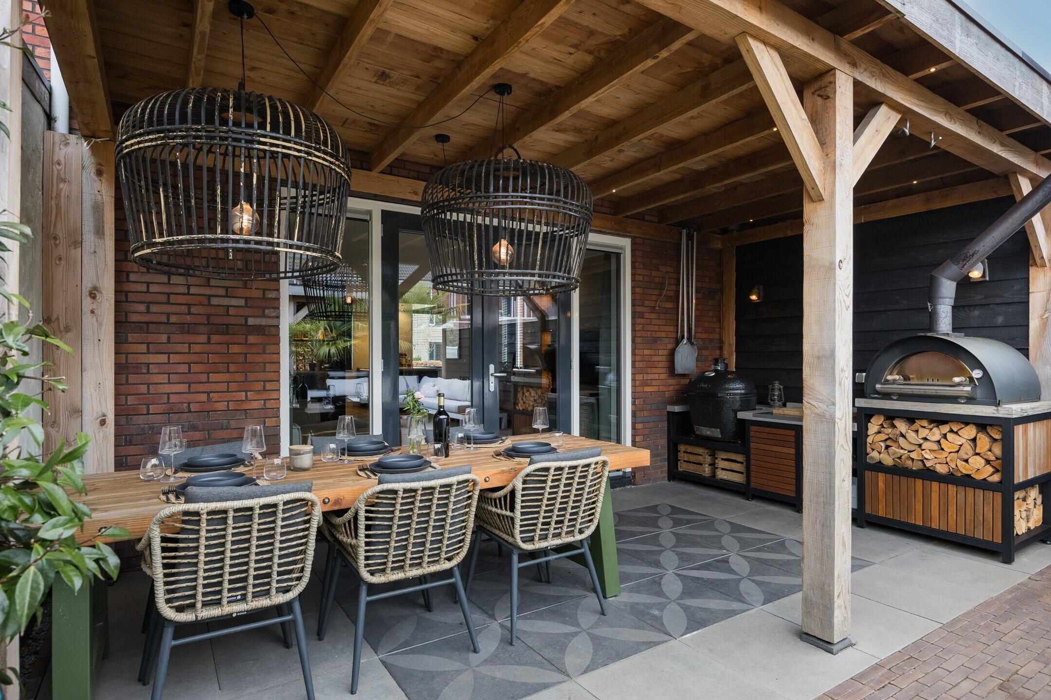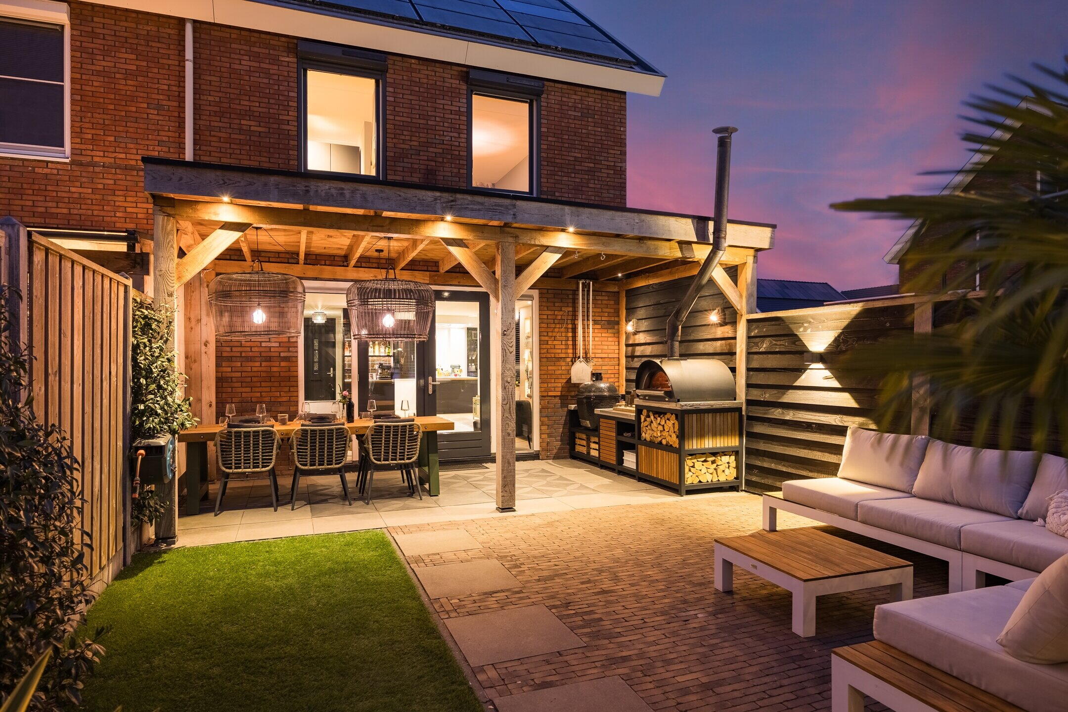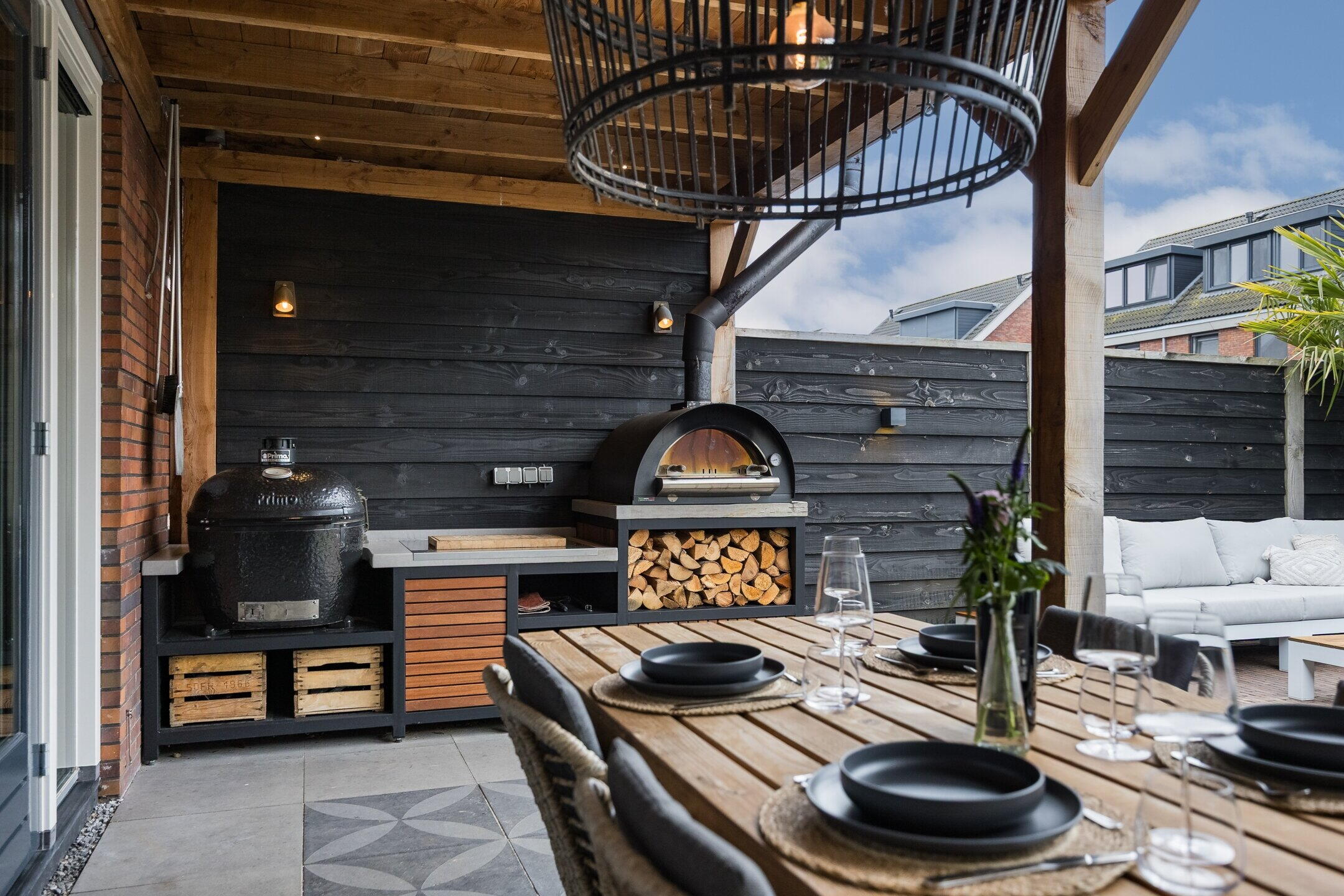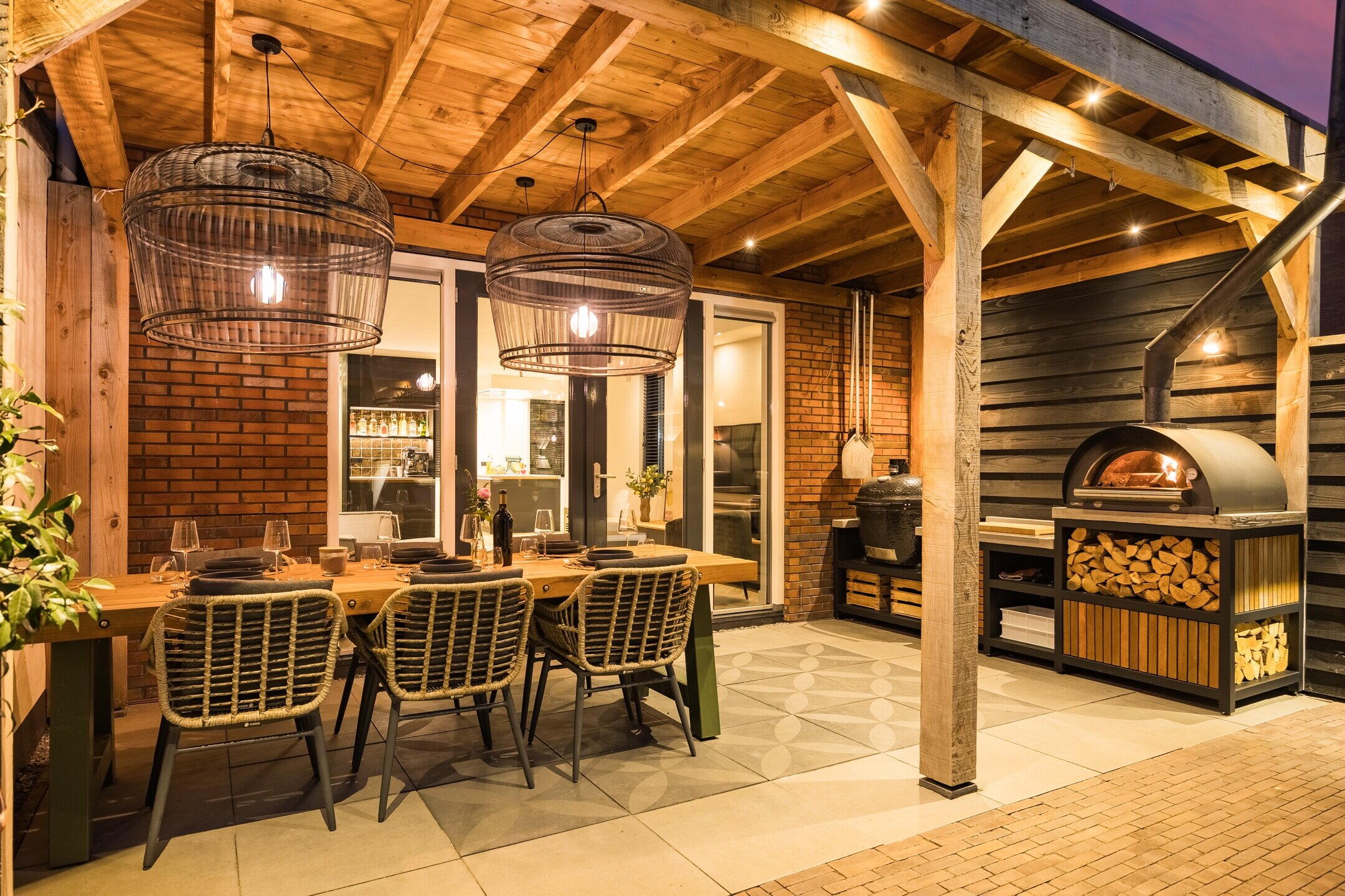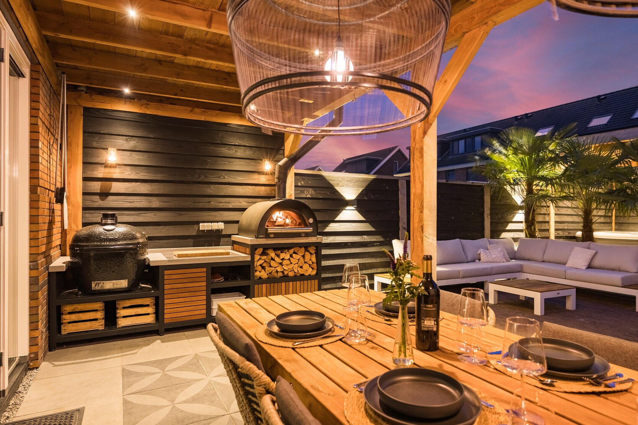 - Overkapping met buitenkeuken, barbecue en pizzaoven (eventueel ter overname)