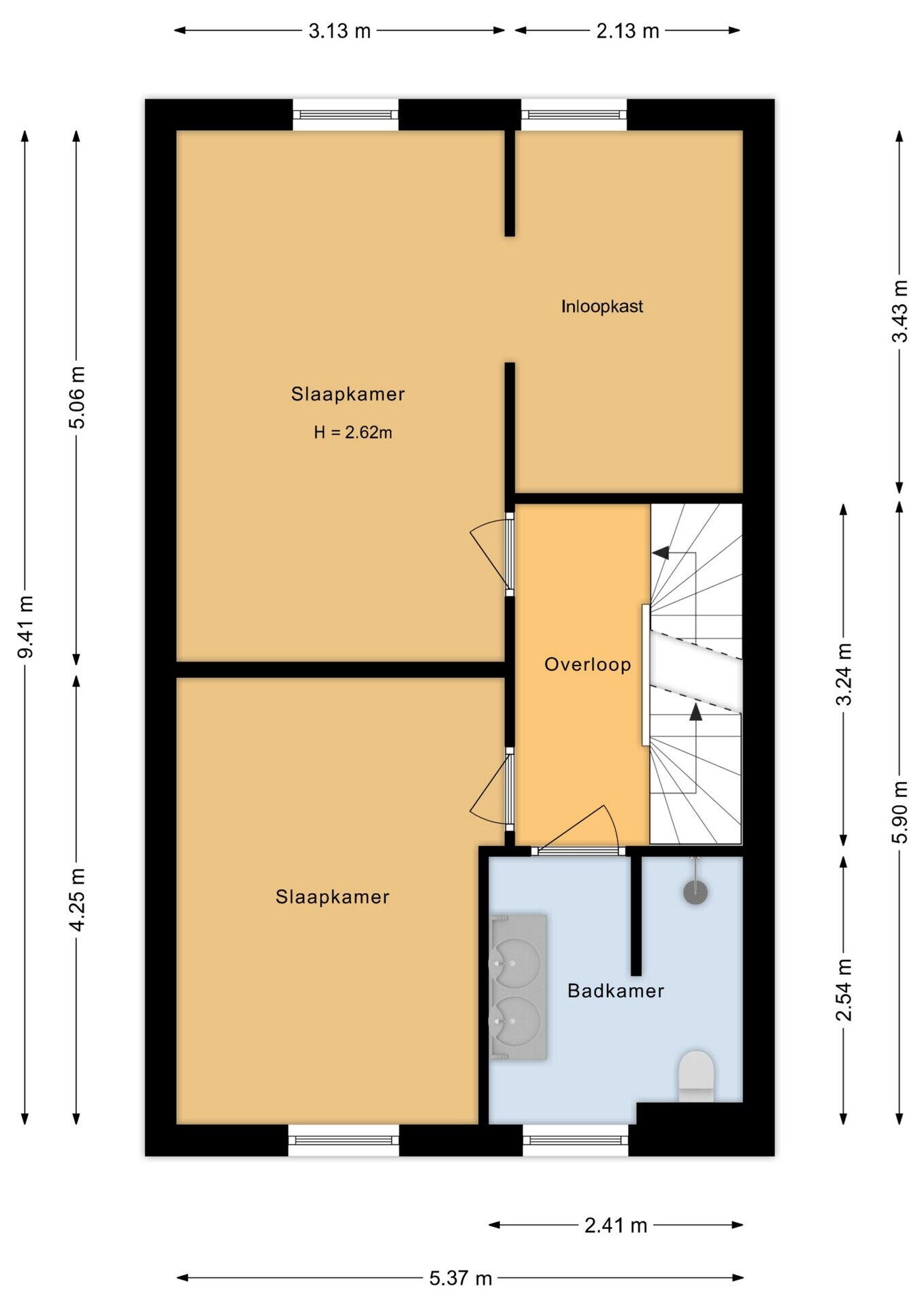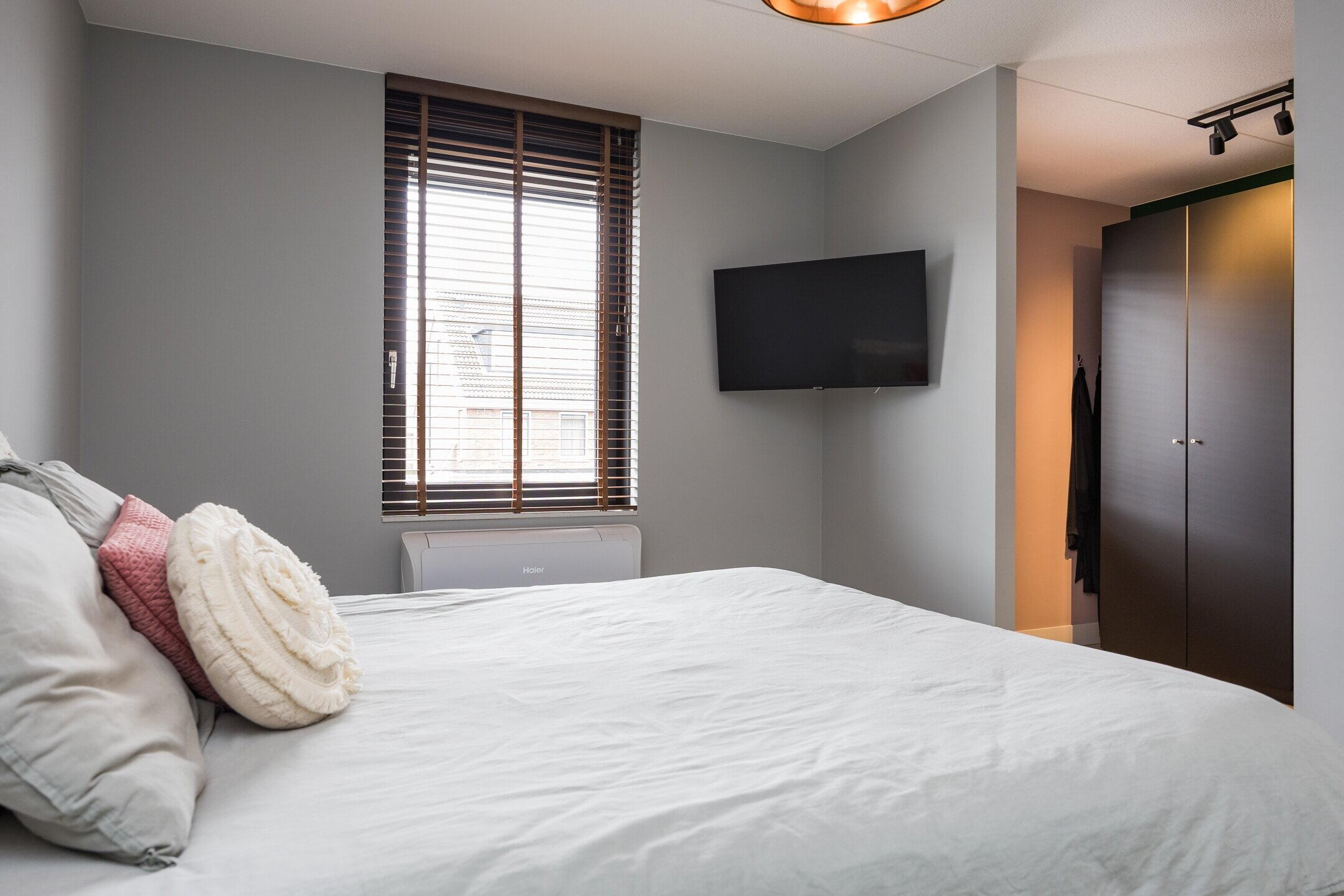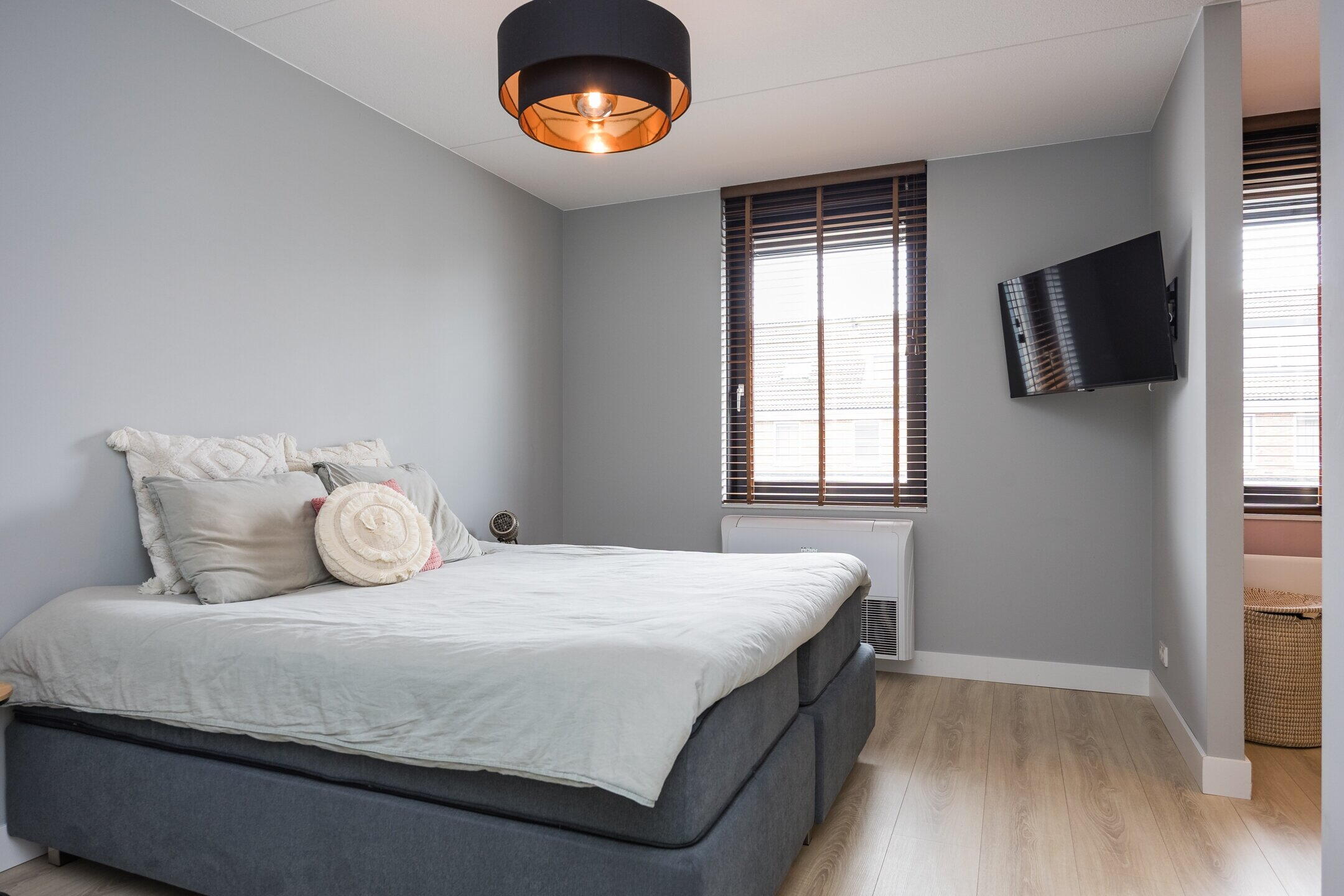 Op de eerste verdieping bevinden zich twee ruime slaapkamers, waarvan één is voorzien van een inloopkast. Deze ruimte kan desgewenst eenvoudig worden teruggebracht naar een volwaardige extra slaapkamer, waardoor er flexibiliteit is in het gebruik van de woning.
