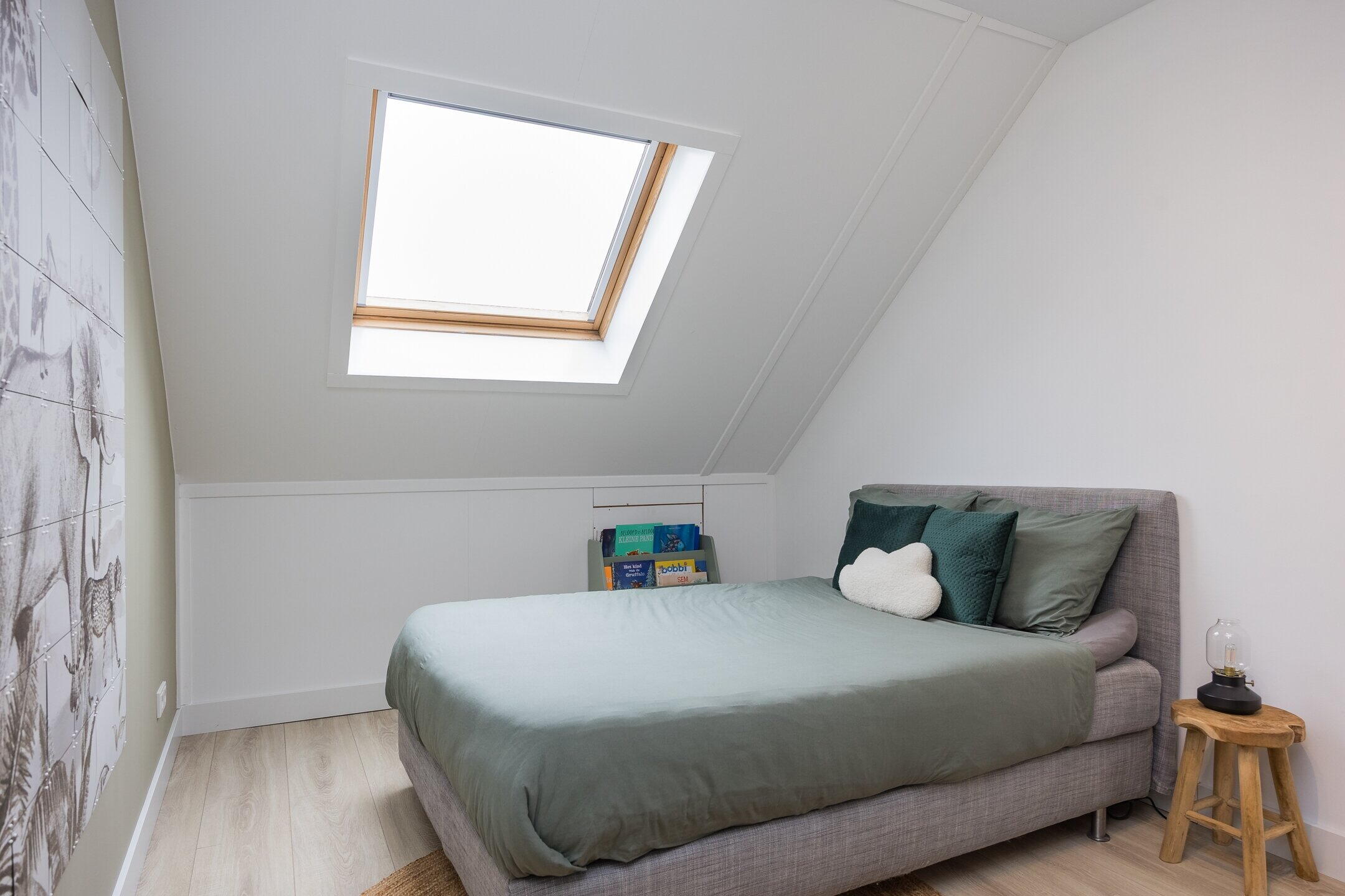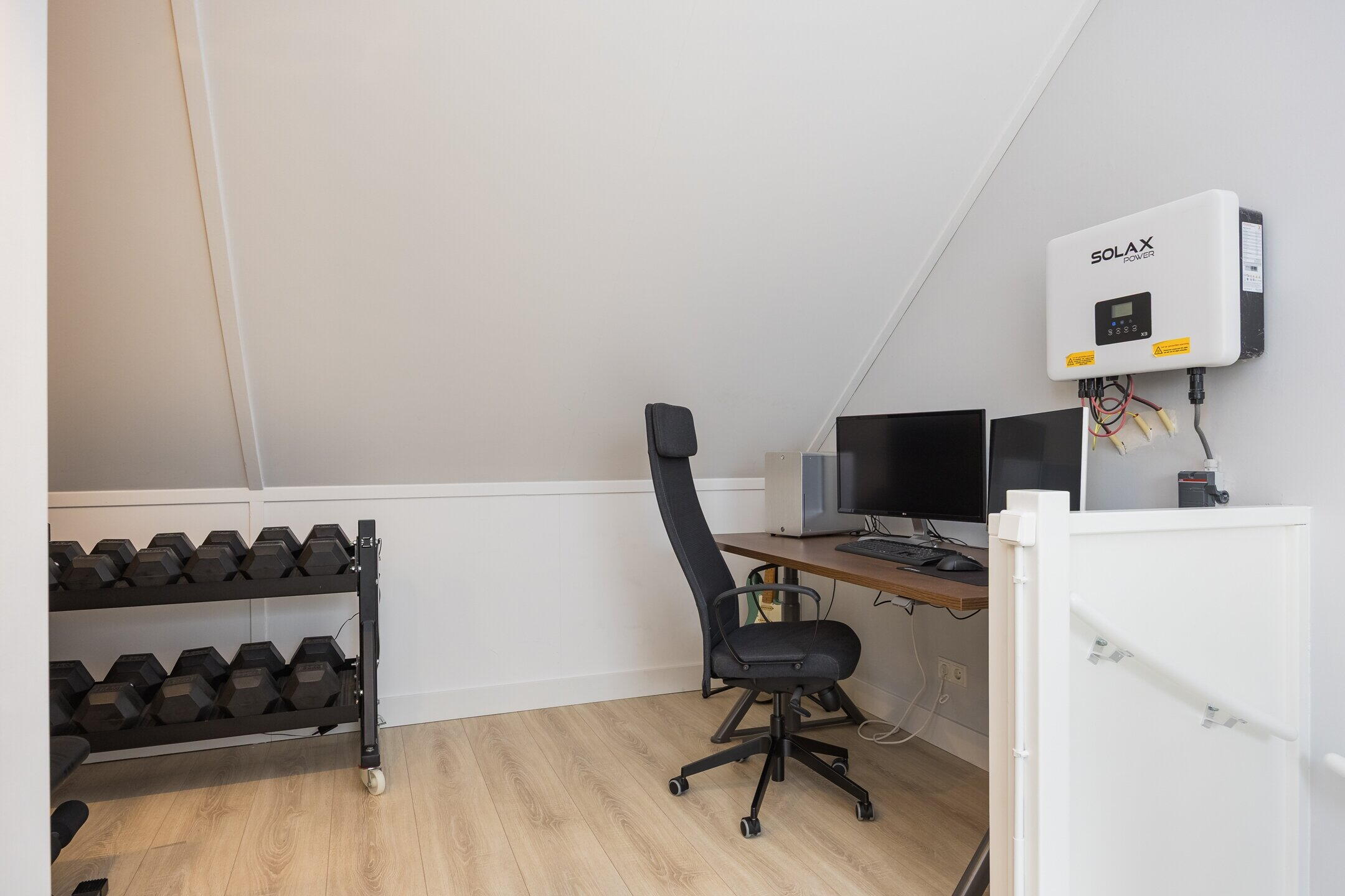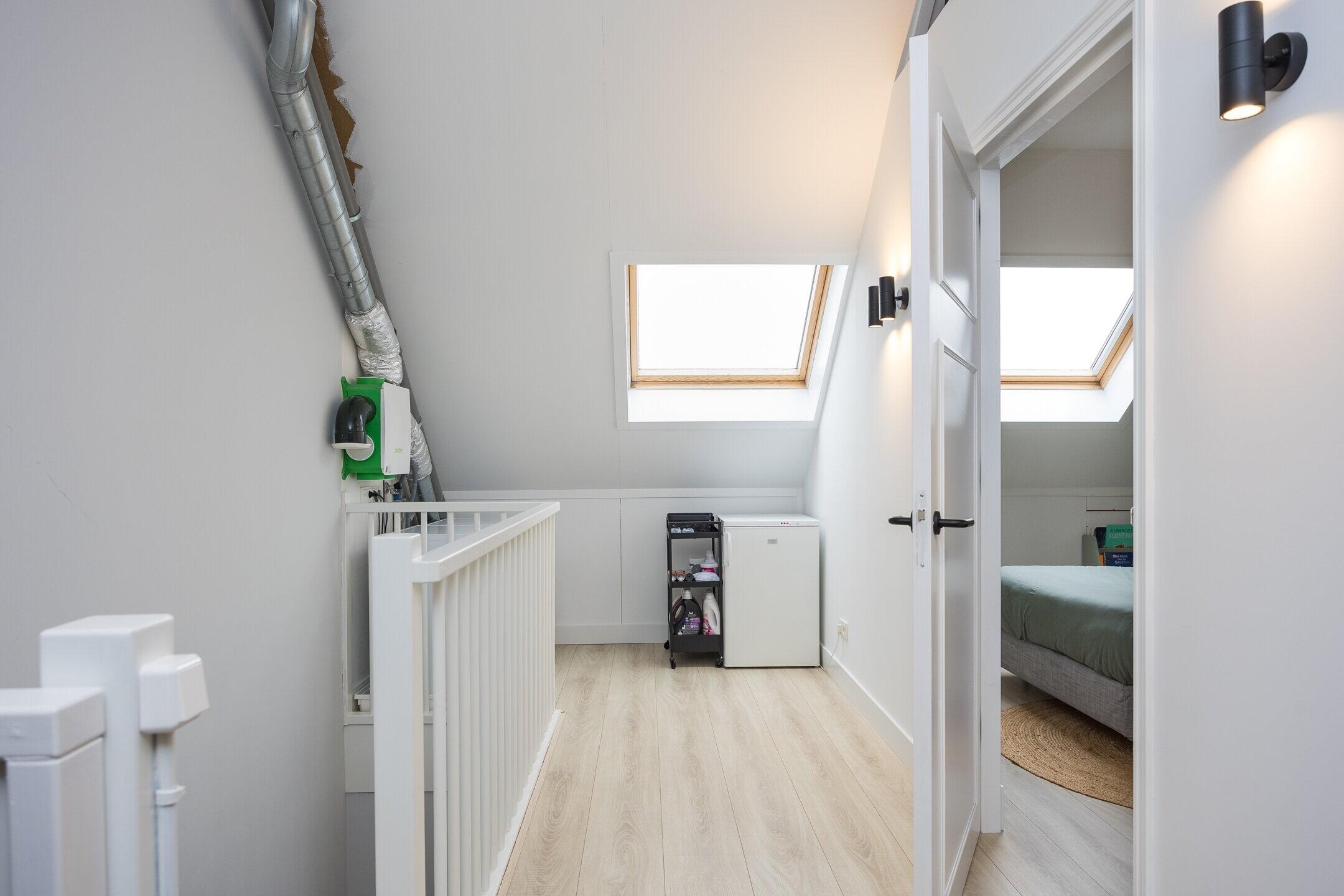 Via een vaste trap bereikt u de tweede verdieping. Hier is een derde slaapkamer gerealiseerd en daarnaast is er ruimte voor een werkplek of hobbyruimte op de overloop. Ook bevinden zich hier de aansluitingen voor wasmachine en droger, evenals de technische installaties.