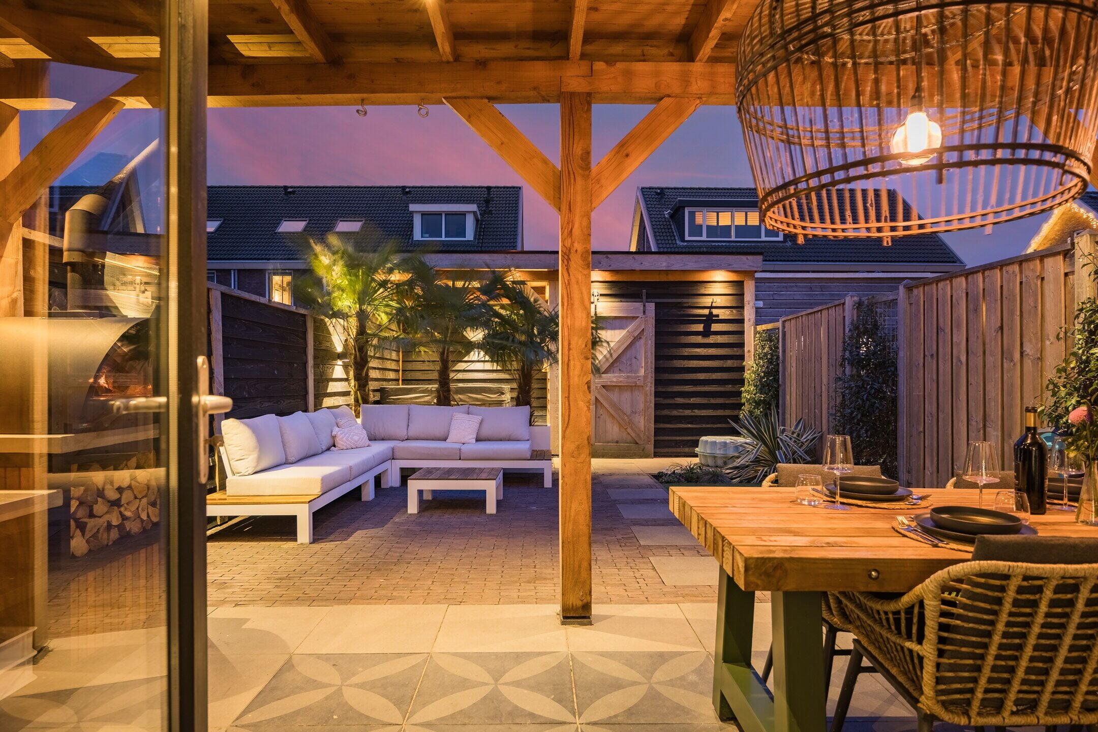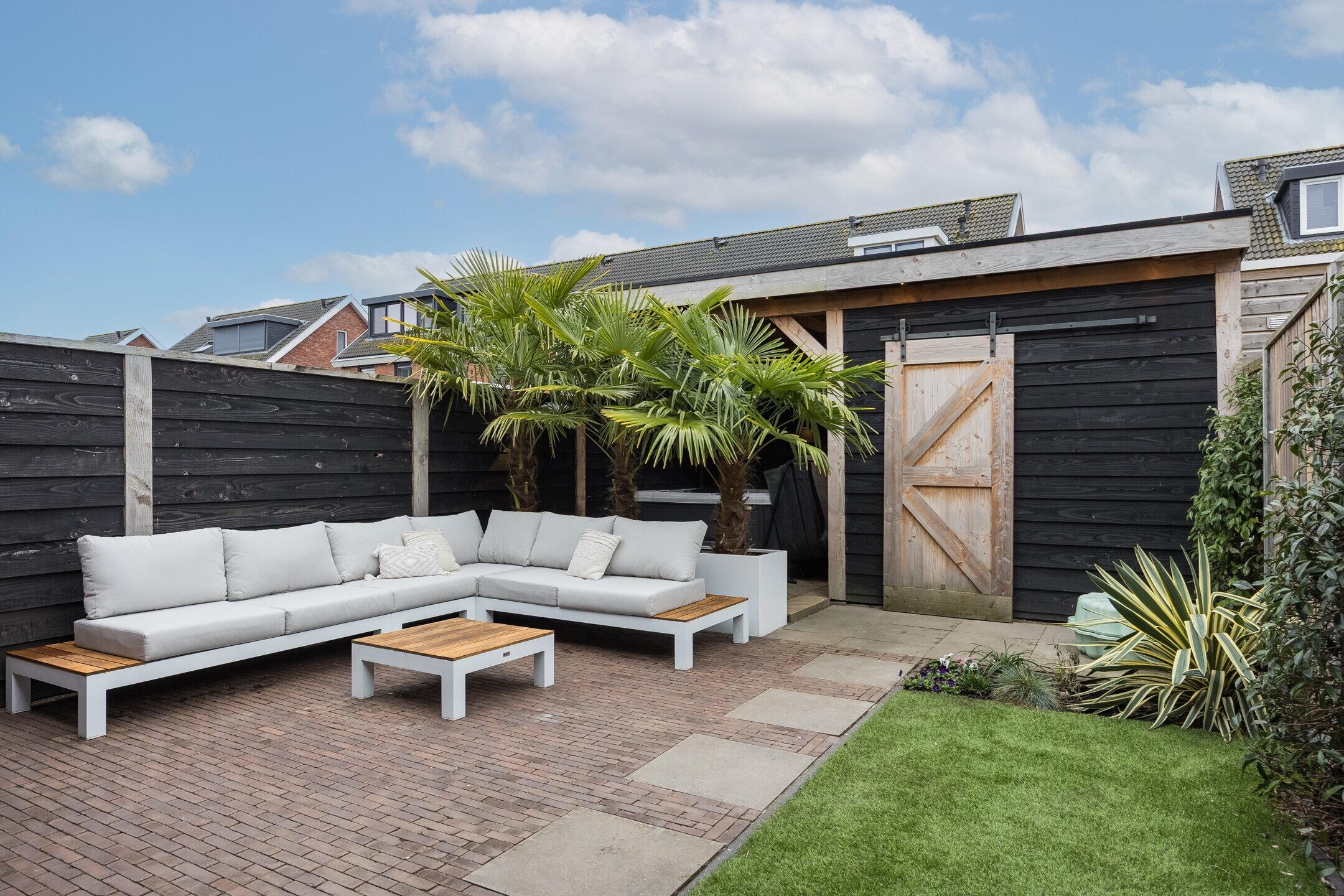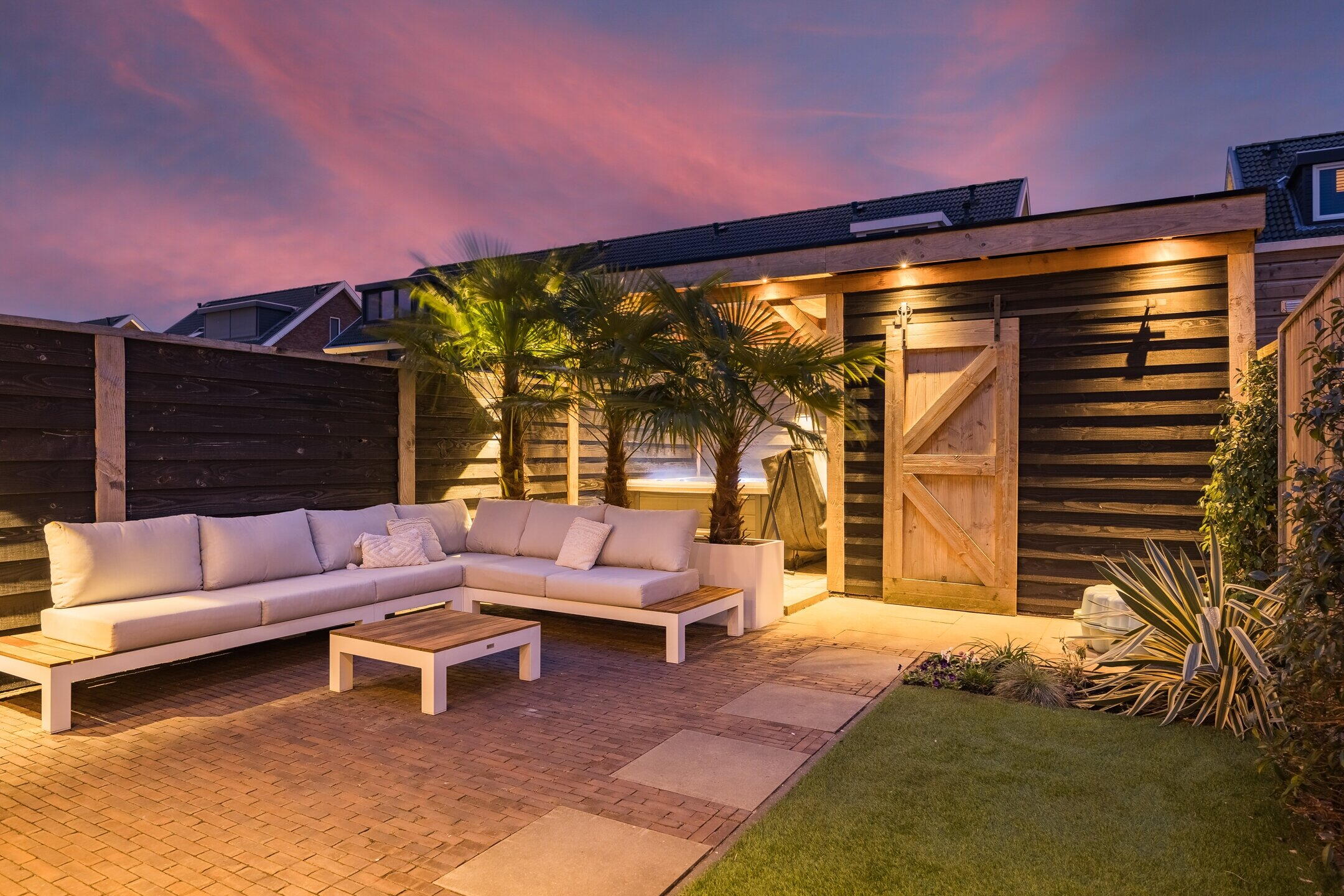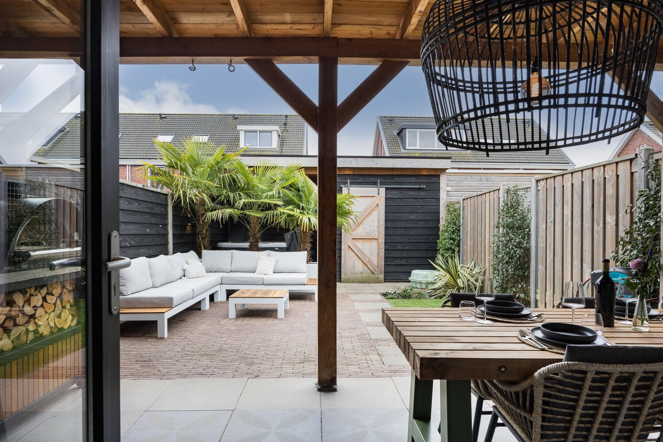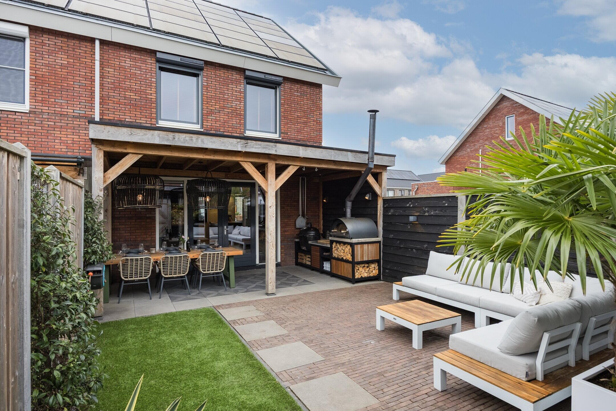 De zuidelijke achtertuin is gelegen op een hoek en biedt hierdoor veel privacy en een heerlijke beschutte ligging. Onder de fraai afgewerkte overkapping is een complete buitenkeuken gerealiseerd, voorzien van onder andere een luxe barbecue en een houtgestookte pizzaoven. Daarnaast bevindt zich verderop in de tuin een overdekte jacuzzi. (Deze hiervoor genoemde items zijn eventueel ter overname.) Ook is er een praktische berging aanwezig en via het achterpad is de tuin eenvoudig bereikbaar. Deze buitenruimte vormt een perfecte plek om na een dag hard werken te ontspannen en te genieten, het hele jaar door.